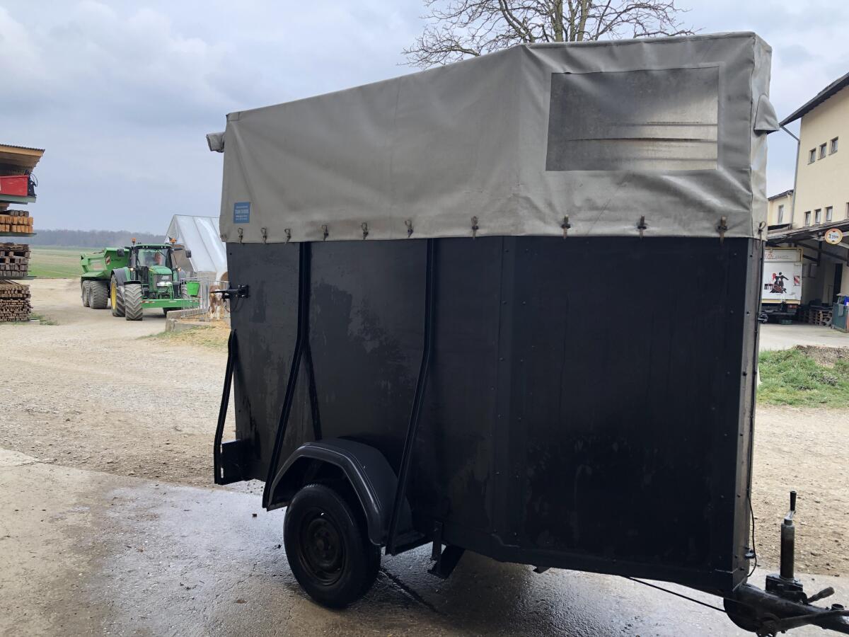 Viehanhänger Fa. Schlögl, Pfarrkirchen, 1.000 kg zul. Ges. Gew. Leichtzügig mit Plane. TÜV bis März 2027, generalüberholt. Anhänger Anhänger für Tiertransporte