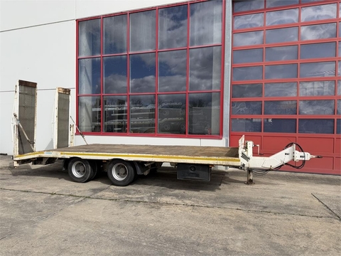 Fahrgestell: Feuerverzinkt, Holz Boden 70 mm stark, 18 x Zurrösen, 12 x Rungentaschen, 2 x Rampen je 3.110 mm lang x 760 mm breit, hydraulische 1 teilige Rampen