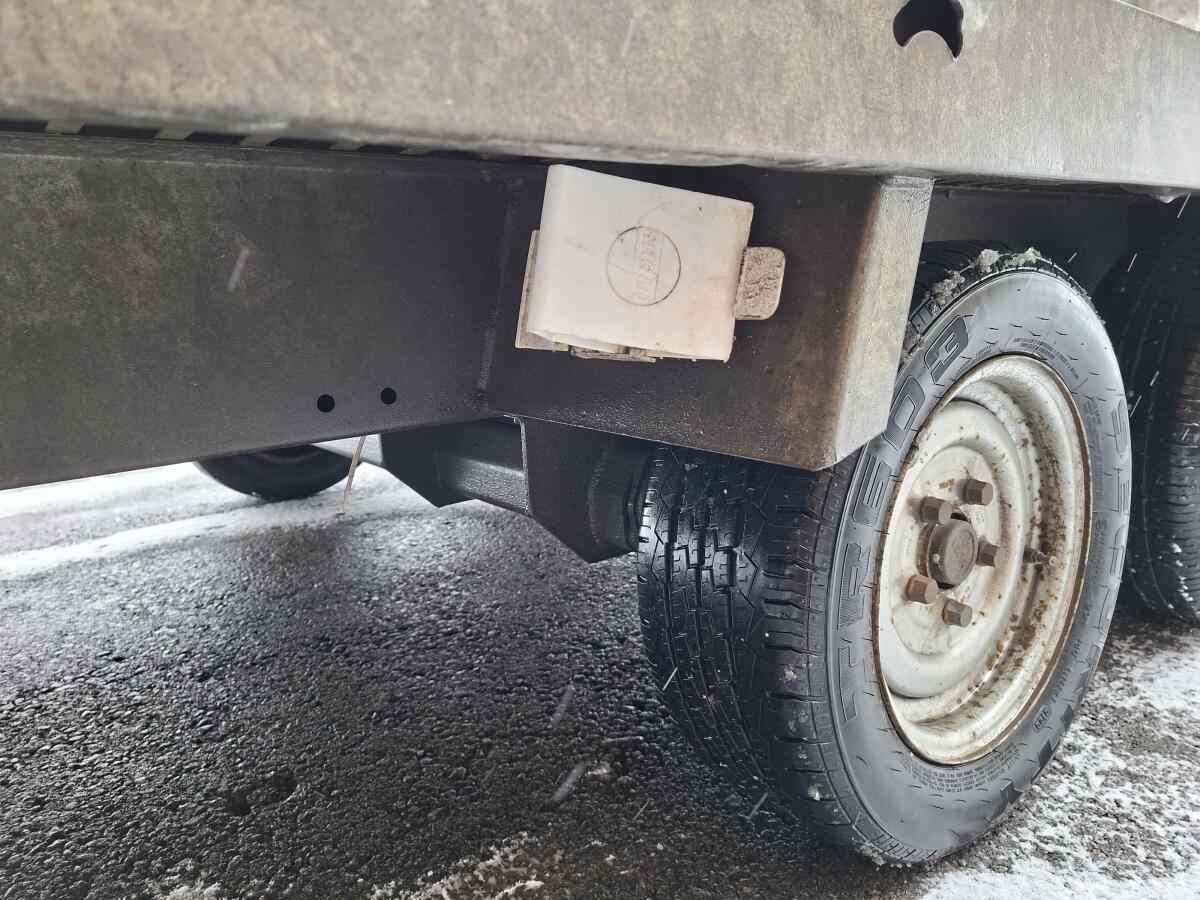 Autoanhänger ca. 4x2 m mit fixen Aufsatzwänden und befahrbar durch Kippvorrichtung. Li. Radaufhängung bei einer der beiden Achsen ist defekt. 57a Pickerl gültig bis