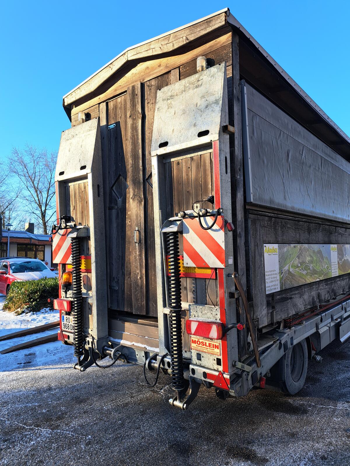 Anhänger 18 t, Plateaulänge: 7, 60 m, Innenhöhe: 2, 95 m, Ladekante: 1, 10 m, keine gültige Überprüfung, Bremsen und Radlager OK, leichter Rost, Lichtanlage 12 V/24 V.
