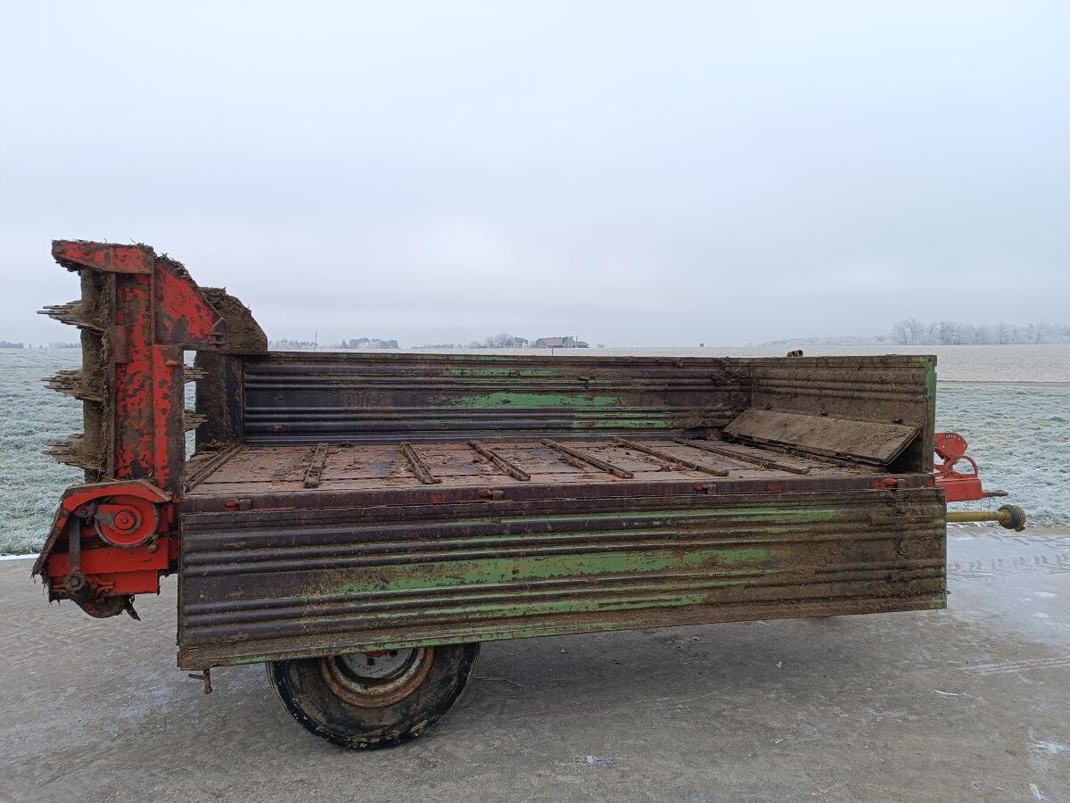 Biete hier einen gebrauchten, alten Miststreuer an. Funktion: Der Kratzboden und die Walzen sind noch funktionstüchtig. Reparaturbedarf: Die Laufräder, Ketten und Sc