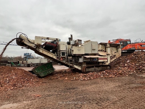 48 t, single toggle crusher for hard rock stones jaw 1000x800 mm, magnet belt, endconveyor, radio control, feeder with prescreening, good old strong machine for grani