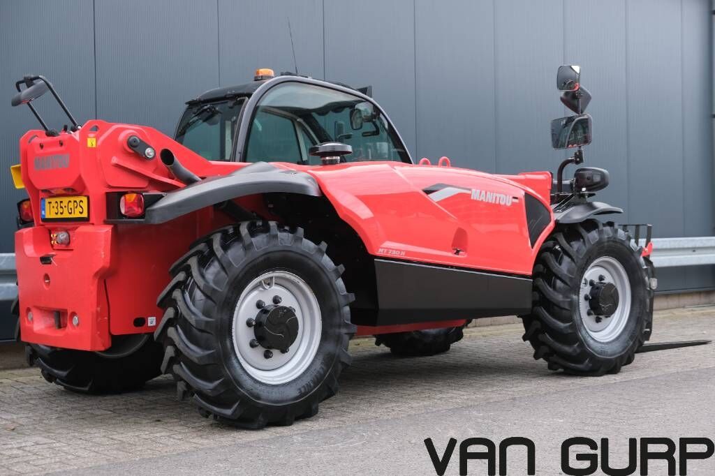 Jong gebruikte Manitou MT730 H verreiker te koop. Met LED koplampen, 12V achterzijde, centraal smeerpunt achterzijde, kentekenregistratie, etc. Baumaschinen Telesko