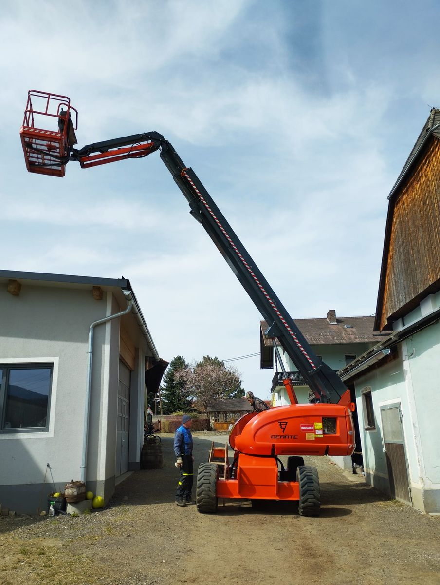 Hubsteiger 22m Allrad Leistungsstarker Teleskop-Hubsteiger mit 22 m Arbeitshöhe und Allradantrieb. Ideal für schwer zugängliches Gelände. - Baumaschinen Hebeb