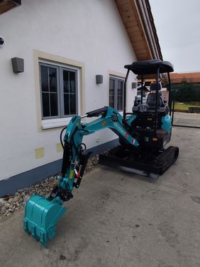 akrotect Minibagger AK14-1 mit SchutzdachKoop MotorEigengewicht ca. 1200 kg.Baggerkettenbreite: 200mmVerstellfahrwerk, Fahrwerk verstellbar von 950mm b