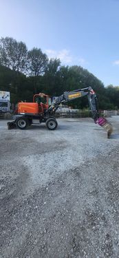 Top Zustand, Straßenzulassung, Schnellläufer (36km/H), Zwillingsbereifung, Powertilt mit Schnellwechsler SW020, Löffelset mit Tragekorb Baumaschinen Mobilbagger