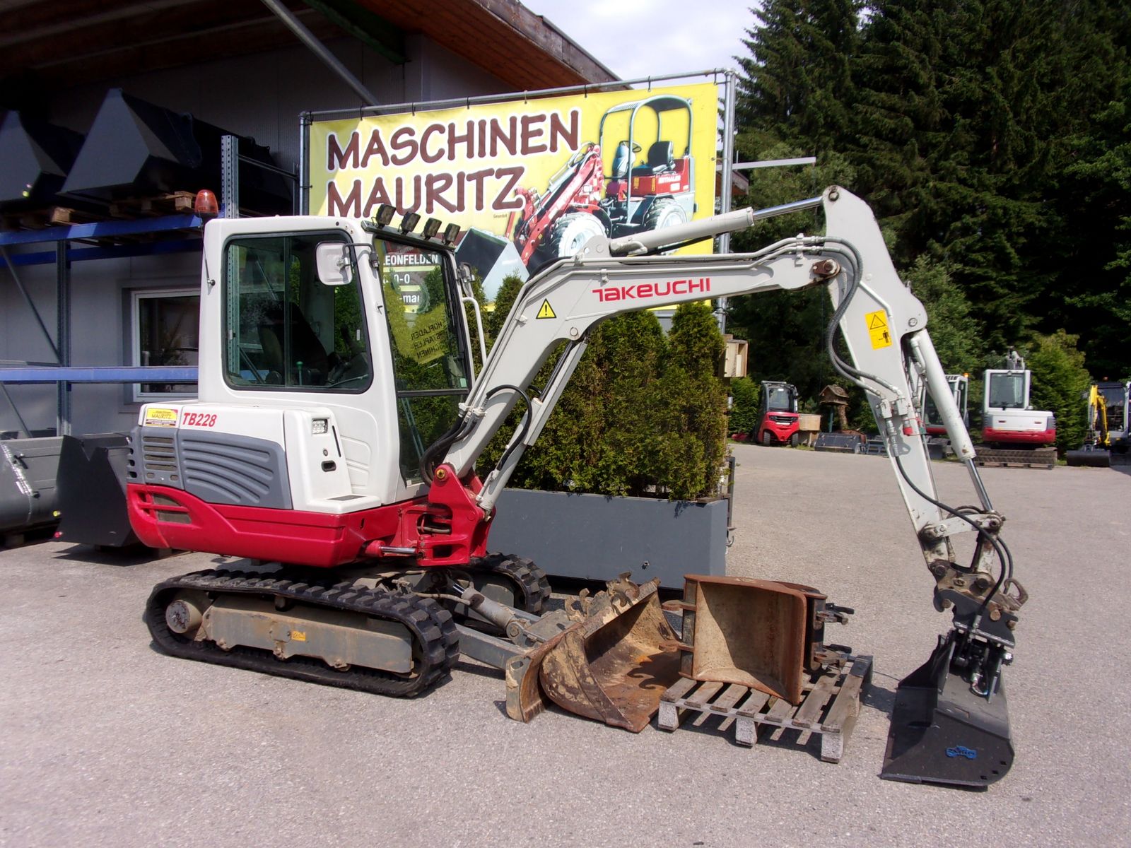Verkaufe Takeuchi TB 228 inkl. hydraulischen Schnellwechsler, 1x Schwenklöffel neu, 2x Tieflöffel , 1x Grabenräumlöffel starr, 2x DW Hydraulikkreis vorne proportional