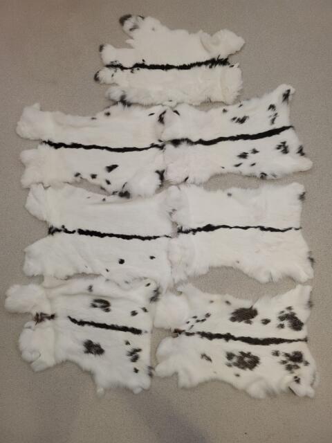 Verkaufe diese Kaninchenfelle, Hasenfelle siehe Foto. 5x Schwarz Weiß Schecke, 2x Wild Weiß Schecke. Maße ca. 55x35 cm. Beispielsweise gut für Müller geeignet. Bekle