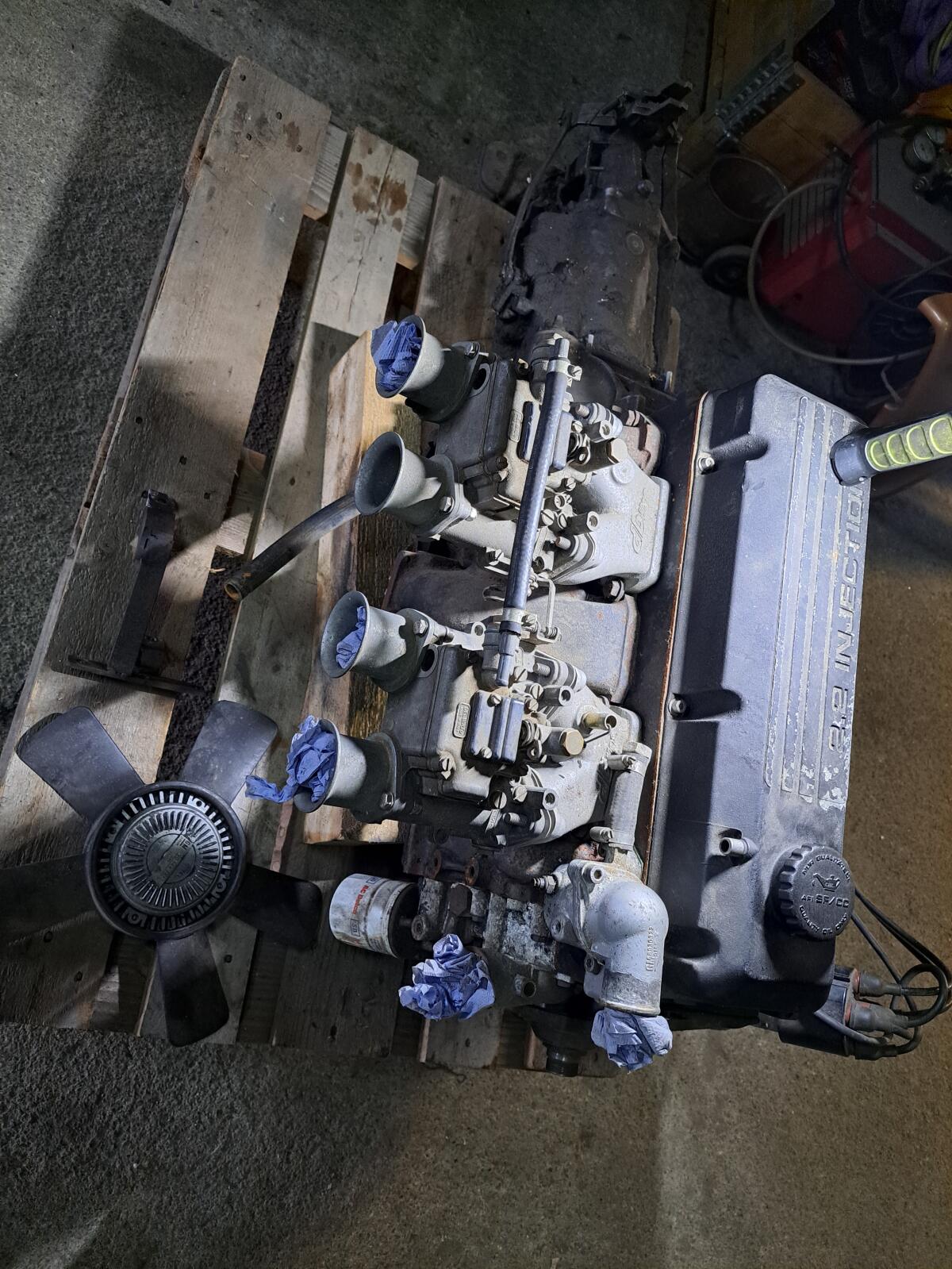 Verkaufe gebrauchten Opel C-Kadett 2 l Motor mit 45 DELLORTO Vergaser, dbias Krümmer, 4-Gang-Getriebe, Lichtmaschine, Starter, Verteiler. Steht schon einige Jahre in