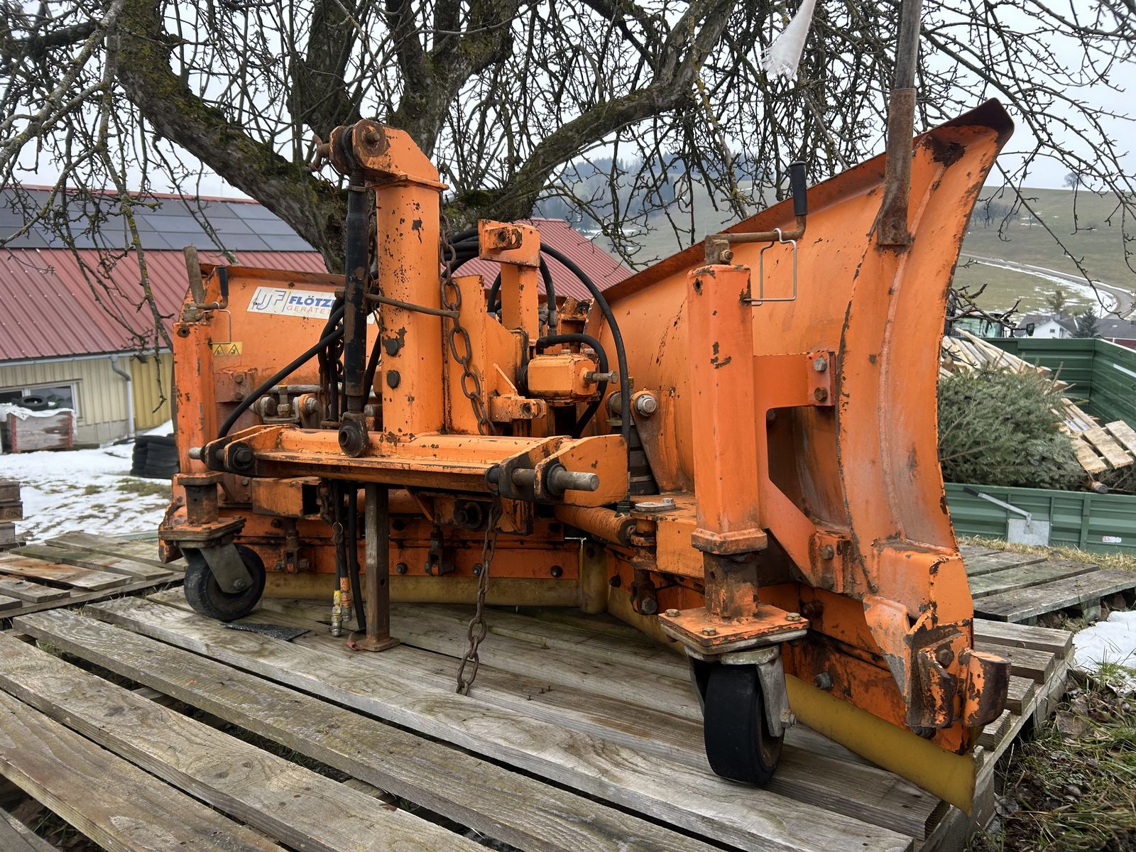 hydraulisch verstellbar durch zwei dw. Zylinder Schwenkbereich: beidseitig jeweils ca. 30° Stützräder 2 Stk. Federklappen (als Auffahrsicherung) Pendelausgleich (zur Anpassung an die Querneigung) Anbaurahmen für Frontkraftheber (Kat.I oder II) Pflughöhe-mittig: ca. 750 mm Pflughöhe-seitlich: ca. 900 mm Breite: ca. 2m