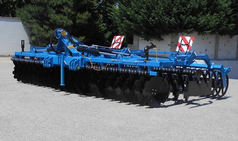Kerner-Kurzscheibenegge HELIX H 450 inkl. Crackerwalze GCW 600/150 mit integrierter Messerschiene, Dreipunktanhängung, hydraulische Tiefeneinstellung, symmetrische Scheibenanordnung, dadurch kein Seitenzug, fein gezackte Scheiben (Ø 560mm), wartungsfreie Scheibenlagerung, Prallstriegel vor Walze, Beleuchtung, Abstellstützen und Randbleche.