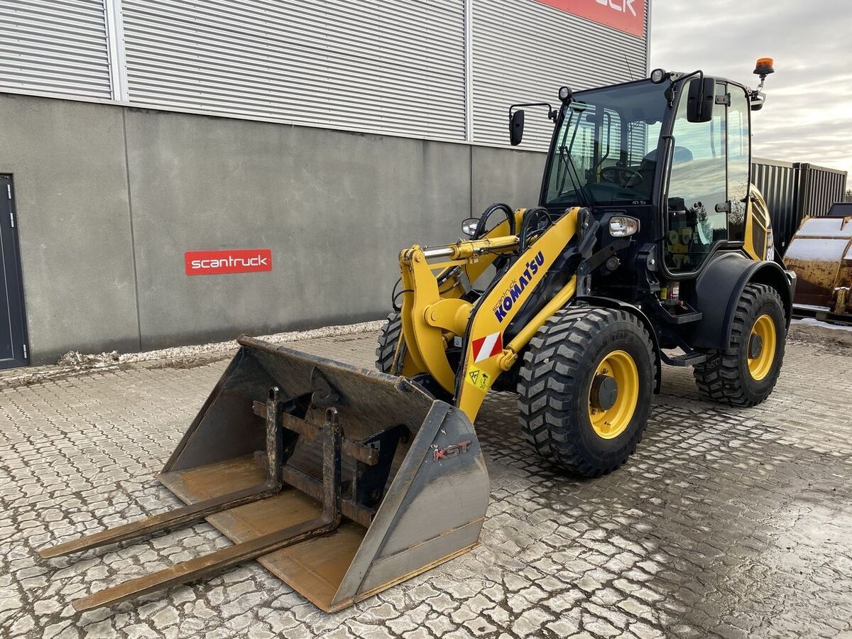 == More details (EN) == Classification: B Steering: Articulated Boom / loading arm: ECSS boom suspension, Bucket level indicator, Return to dig Attached equipment, loading/telescopic arm: Skovl, Hydraulisk hurtigskift (Volvo L30/L35 kompatibel) Attached equipment, forks: Pallegafler 1200mm Wheel front brand: Goodyear Wheel front type: Tractor/industry patern Wheel rear brand: Goodyear Wheel rear type: Tractor/industry patern Komtrax monitoring Ekstra arbejdslys halogen (2 frem 2 bag) Kørelys for kørsel i højre side 3. hydraulic line on arm Axles with LSD Hydrostatisk fremdrift 40km/t med speed control Vendbar køler Førerkabine m/aircondition Joystick DAB radio m/bluetooth Front shield sun screen Tiltbar kabine for bedst mulig plads til service m.m