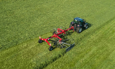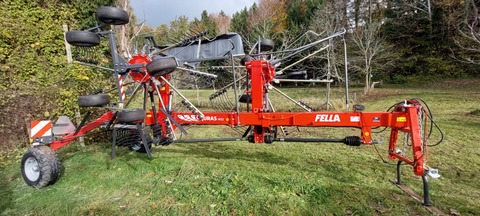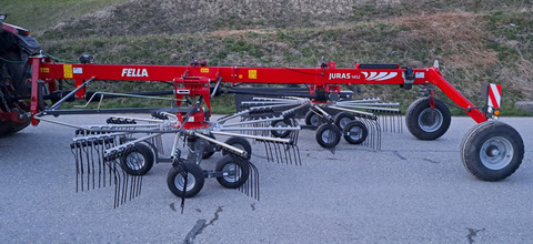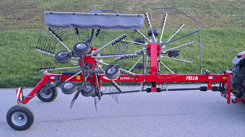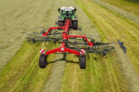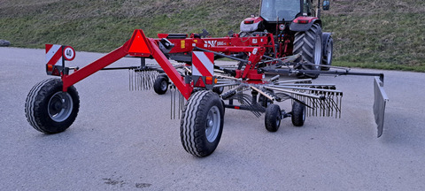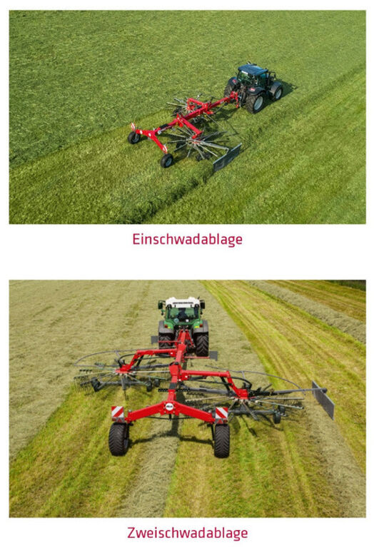 Doppelschwader / Zweikreisel - Schwader / Seitenschwader Massey Ferguson MF RK 672 SD TRC (Fella Juras 1452)Doppelschwader mit seitl. SchwadablageMehr Leistung beim Schwaden - einfache Bedienung - individuelle SchwadgrösseAnpassung an die Futtermenge durch Ein- oder Zweischwadablage möglich:- Die Ablage eines großen Einzelschwades ist ebenso möglich wie die von zwei kleinen Einzelschwaden oder eines Doppelschwades durch Gegenfahrt, perfekte Anpassung an 1., 2.,