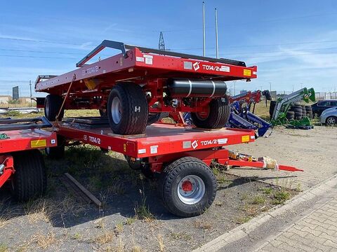 Der T014/2 ist ein zweiachsiger Ballentransportwagen von Metal-Fach, ideal für den sicheren und effizienten Transport von Stroh-, Heu- und Silageballen. Mit einer Nutzlast von bis zu 9.000 kg und einer Kapazität von bis zu 26 Ballen (Ø 120 cm) bietet er eine hohe Transportleistung. Die Plattform lässt sich durch Ausziehen der Heckwand um 80 cm verlängern, um auch größere Ballen sicher zu transportieren.