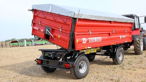 Zweiachsanhänger der Serie T710 eignen sich hervorragend für landwirtschaftliche Arbeiten. Sie sind in zwei Versionen erhältlich: als 6- und 8-Tonne-Maschinen. Die Anhänger zeichnen sich durch ihre Festigkeit aus. Die geschlossenen Räume der Wandprofile sind mit einer fehlerfreien Schweißnaht gesichert. Alle Bestandteile der Mulde sind mit einer chemisch verstärkten Zweikomponentenfarbe bestrichen, die durch eine hohe Festigkeit und Beständigkeit gegenüber UV-Strahlung gekennzeichnet ist. Die Bordwände sind zusätzlich mit Bindeseilen für Wände ausgestattet. Der Anhänger zeichnet sich durch eine solide Konstruktion aus, welche sich vorwiegend auf die geschlossenen Profile stützt. Der Anhänger kann dreiseitig entladen werden. Für die Sicherheit sind die Wände mit einem zentralen Verriegelungssystem ausgestattet. Standardmäßig sind die Anhänger mit einer Öse fi40mm und einer Deichsel Typ V ausgestattet. Gegen eine zusätzliche Gebühr können auch eine Öse fi50mm und eine Deichsel Typ V oder Y in einer verlängerten Ausführung eingebaut werden. Der Ladekasten ist mit einem universellen Wandöffnungssystem ausgestattet. In der Rückwand befindet sich ein Kornschieber, welcher zusätzlich mit einer Blockierung ausgestattet wurde. Der Anhänger besitzt Hydraulik- und Bremsvorrichtungen im hinteren Teil, dadurch kann man einen weiteren Anhänger ankoppeln. Manuelle Anhängerkupplung hinten, starr. Das Modell T710 verfügt über eine pneumatische Ein- oder Zweileitungsbremsanlage. Außerdem ist auf Wunsch des Kunden der Einbau einer pneumatischen, hydraulischen Bremsanlage möglich. Optionale Zusatzausstattung: voller oder Netzaufsatz, Plane mit Rahmen, Arbeitsbrücke, Korb für Ersatzrad oder Windenkorb. Standardmäßig ist der Anhänger mit einer Deichsel Typ V ausgestattet, die durch eine Deichsel Typ V