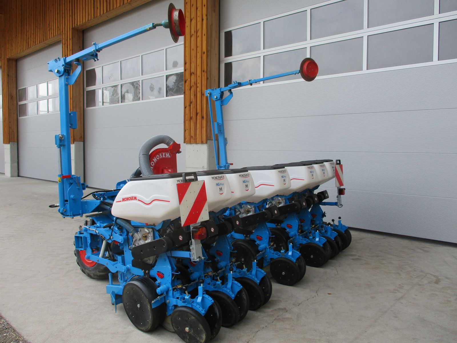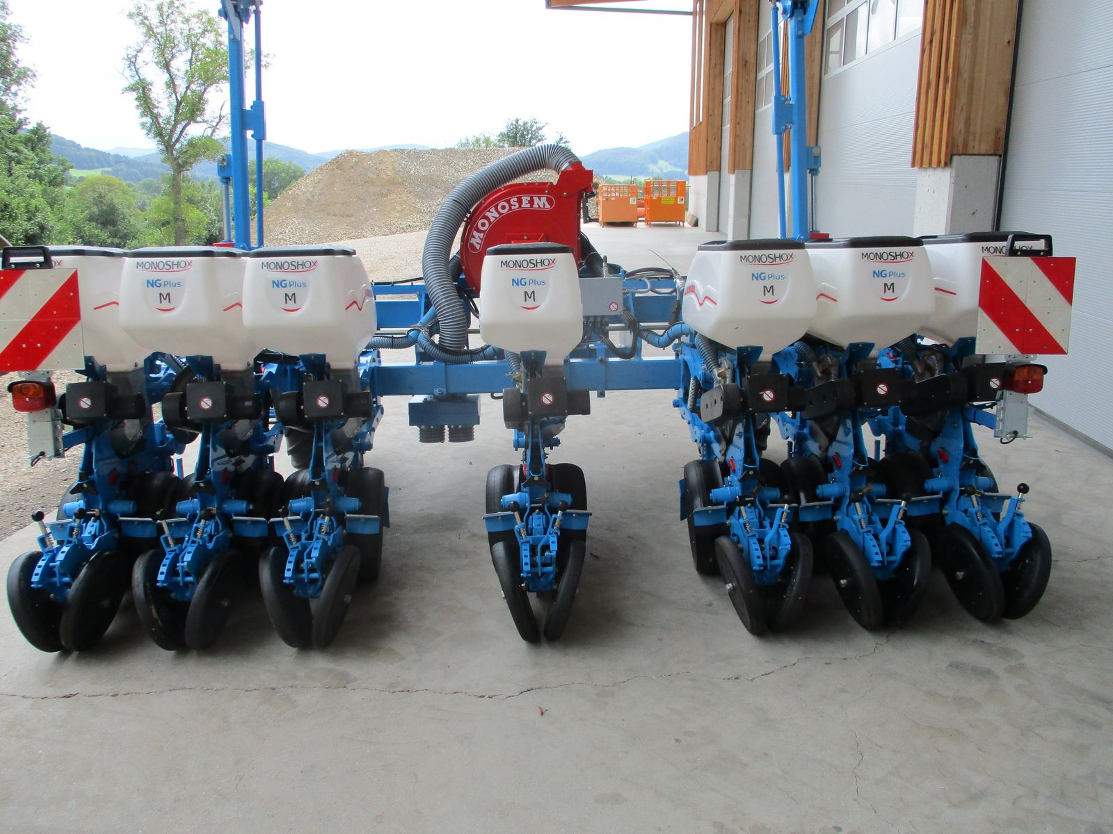 Einzelkornsämaschine 7 reihig Doppelteleskop, 70cm Reihenabstand, Transportbreite 328cm, Monoshox Elemente Elektrisch angetrieben Säüberwachung CS 8000 ISOBUS, Breite Reifen 26x12, PRO Andruckrolle, Klappbare Spuranzeiger mit Abscherrschraube, Beleuchtung, Abluftkit,
