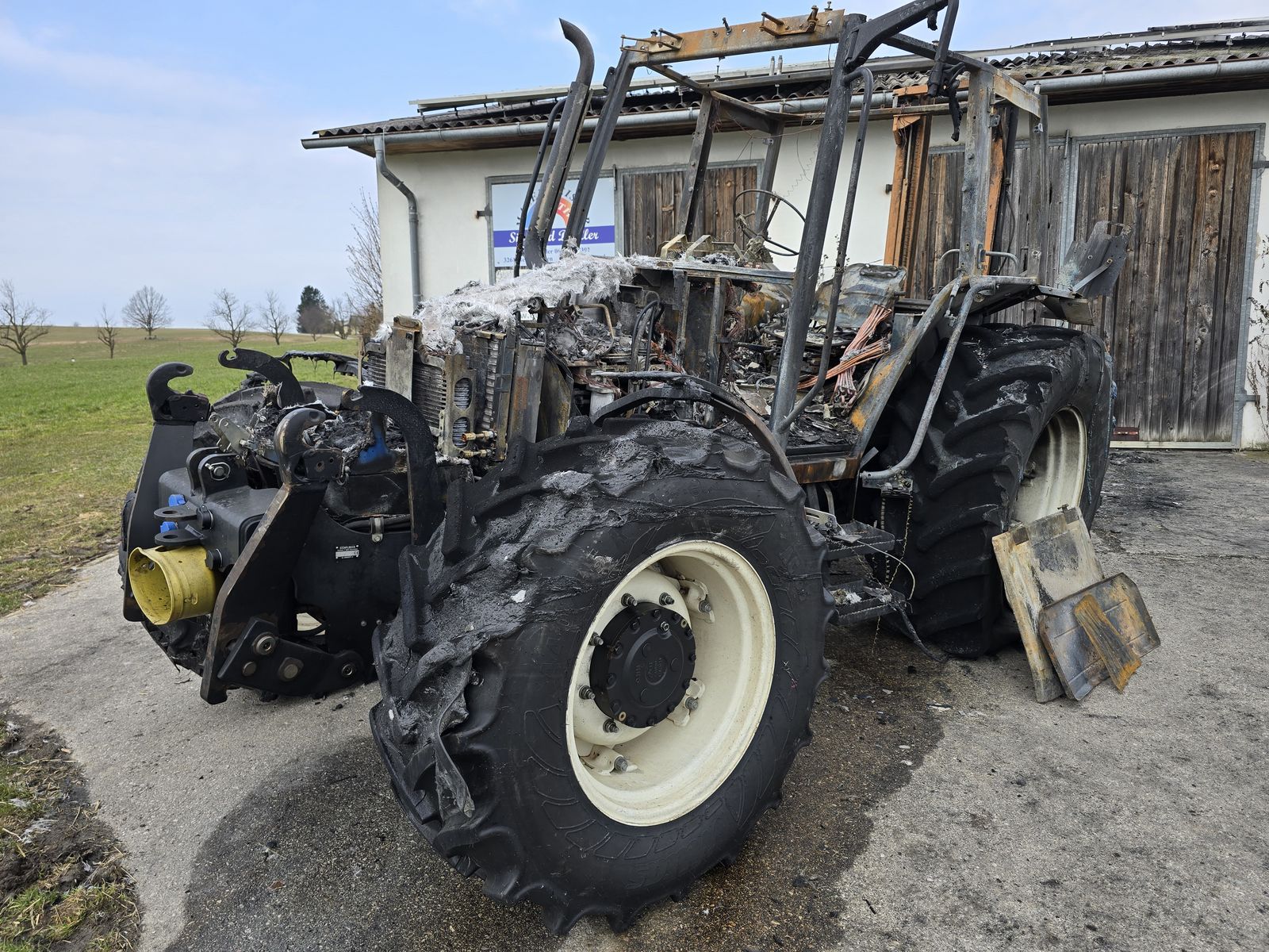 New Holland T5050 – Teilespender / Bastlerfahrzeug mit Top-Komponenten Zum Verkauf steht ein New Holland T5050 (4,5l Hubraum) mit Brandschaden. Trotz des thermischen Schadens bietet die Maschine hervorragende Möglichkeiten zur Ersatzteilgewinnung oder als Basis für einen Neuaufbau, da wesentliche mechanische Komponenten vor dem Brand in einem sehr guten Zustand waren. Eckdaten & Highlights: Laufleistung: Nur ca. 3.500 Betriebsstunden (Original). Motor: 4,5l Hubraum (robuste mechanische Basis). Getriebe: Lastschaltgetriebe mit PowerShuttle (funktionierte bis zuletzt einwandfrei). Frontausstattung: Fast neuwertige Fronthydraulik & Frontzapfwelle (kaum genutzt). Bereifung: Vorderreifen sind in gutem Zustand (nicht vom Brand betroffen/beschädigt). Zustand: Brandschaden: Der Traktor ist ausgebrannt. Kabine und Kunststoffteile sind zerstört. Mechanik: Getriebe, Achsen und die vordere Zapfwelleneinheit sind massiv gebaut und für Profis oft noch gut aufzubereiten oder als Teilespender zu verwerten. Verkauf erfolgt ausdrücklich als Defekt/Bastlerware unter Ausschluss jeglicher Gewährleistung.