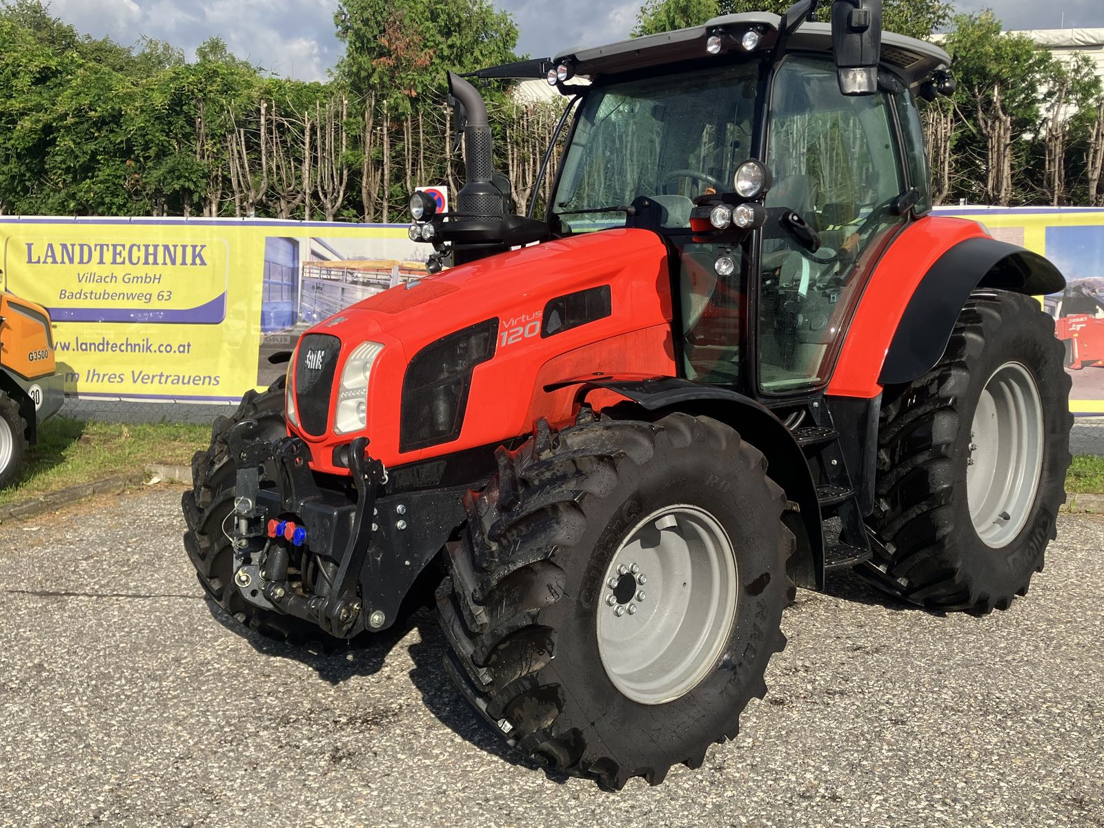 SAME Virtus 120, Powershuttlegetriebe 40 Km/h, mit 3-fach Lastschaltung 30/30 und Stop & Go Funktion, luftgefederte Komfortkabine mit Klimaanlage, Grammer-Komfort Luftsitz, elekt. Batteriehauptschalter, Beifahrersitz mit Sicherheitsgurt, Radio mit Bluetooth, Halterung für externen Monitor, Elektrohydraulische Allrad- und Differenzialsperrenzuschaltung, doppeltwirkender Frontkraftheber mit EHS und vier Leitungen, Unterlenker mit Schnellkupplern Kat. II, 4 x DW Zusatzsteuergeräte hinten, hydraulisches Bremsventil, druckloser Rücklauf, 2 Zusatzhubzylinder, Druckluftanschluss hinten zum auf-/ausblasen, Bereifung: 540/65 R 24 vorne, 600/65 R 34 hinten, autom. Anhängerkupplung, hydraulischer Oberlenker hinten, Fahrzeugbreite: 240 cm, Fahrzeughöhe: 277 cm, 1A gepflegter Zustand, prompt verfügbar. Für weitere Fragen steht Ihnen unser Profi-Verkäufer gerne zur Verfügung!