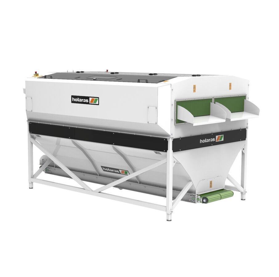 Neue Holaras AS25 Entschloter mit 6 Messern.Gekapseltes System Modell Leistung 20-30 Tonnen / Stunde6 MesserExterner freistehender SchaltkastenOptional: Instellbare Geschwindigkeit der Messer und Vibrationsmotoren. Das sorgt für ein noch besseres Schnittergebnis bei unterschiedlich großen Zwiebeln, wie z. B. bei Sjalotten. (Preis € 11.960,-)Abstand zwischen den Sieben 30 mmAb Lager lieferbar Für optimale Luftzirkulation und StaubreduzierungMit Förderband unter der Maschine zum Austragen des Abfalls Bei der Holaras Zwiebelentköpfmachinen wird das laub nicht abgezogen, sondern einwandfrei abgeschitten von schnell rotierenden messern. Keine Beschädigung, dadurch das die messer die Zwiebeln nicht betätigen.Durch spezielle Vibrations-Elektromotoren werden die Zwiebeln fast schwebend über die Vibrationssiebe geführt, dies gewährleistet die schonendste Behandlung. Das laub wird von einem Luftstrom heruntergezogen und durch die messer sauber abgeschnitten.
