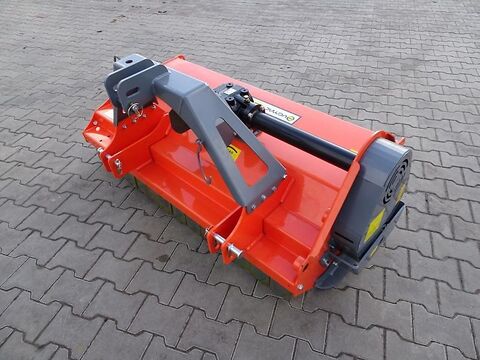 Besuchen Sie auch unseren neuen Online-Shop: www.traktorshop24. com Hammerschlegel-Mulcher Agrifarm MM145 Neugerät mit Heckklappe für Service- und Reinigungsarbeiten Mittelschwerer Mulcher für Klein- und Kompakttraktoren ab 25PS Die Mulcher der Baureihe agrifarm MM sind aufgrund der schweren Bauweise perfekt geeignet für Klein- und Kompakttraktoren ab ca. 25PS zum Mulchen von Gras, Gestrüpp und Gehölz auf Wiesen, Weiden, Pferdekoppeln und Waldrändern. Die Mulcher der Baureihe agrifarm MM zeichnen sich insbesondere durch die zu öffnende Heckklappe aus, die für Service- und Reinigungsarbeiten genutzt werden kann. Diese muss jedoch beim Mulcher verschlossen sein aufgrund der Bestimmungen der Berufsgenossenschaften. Die Montage erfolgt an den Heck-Drei-Punkt Kat.1 des Traktors mit einer Zapfwellendrehzahl von 540 U/min. Das Getriebe des Mulchers läuft im Ölbad und hat einen integrierten Freilauf. Ausgestattet sind die Mulcher mit schweren 800gramm Hammerschlegeln, die versetzt auf der Schlegelwelle verteilt sind. Die gerade Schnittkante der Schlegel sorgen für einen sauberen Schnitt der Wiese. Weiterhin können auch kleinere Äste problemlos gemulcht werden. Durch eine integrierte Gegenschneide im Mulchgehäuse wird das Mulchgut zerkleinert und über das Heck ausgeworfen. Eine höhenverstellbare Nachlaufwalze am Heck des Mulchers und höhenverstellbare Gleitkufen sorgen für die Regulierung der Schnitthöhe. Ein Abstreifer sorgt für ständiges Reinigen der Nachlaufwalze. Schlegelwelle und Nachlaufwalze laufen in schmierbaren Lagern, die von aussen leicht zugänglich sind. An der Frontseite des Mulchers sorgen Pendelklappen dafür, dass keine Gegenstände wie Steine oder Mulchgut aus dem Mulchgehäuse austreten können. Die Kraftübertragung von Getriebe zur Schlegelwelle wird durch einen 3- bzw. 4-fachen Keilriemenantrieb gewährleistet, je nach Arbeitsbreite. Die Spannung der Keilriemen ist sehr einfach durch leicht zugängliche Spannschrauben zu regulieren. Das Mulchgehäuse besteht aus 5mm starkem Stahl, die Gehäuseseiten sogar aus 6mm starkem Stahl. Die 3-Punkt-Aufhängung ist 10mm stark. Aufgrund des geringen Gewichtes sind diese Mulcher speziell für Klein- und Kompakttraktoren ab 25PS geeignet. Optional sind die Mulcher auch mit hydraulischer Seitenverstellung und Y-Messern erhältlich. Technische Daten: Arbeitsbreite: 145cm Außenbreite: 162cm Tiefe Gehäuse 64cm, Gesamttiefe Mulcher 82cm Höhe Gehäuse 43cm, Gesamthöhe Mulcher 90cm Abstand von Mitte Zapfwelle nach Links außen: 73cm Abstand von Mitte Zapfwelle nach Rechts außen: 89cm Messer: 18 Stück 800gramm Hammerschlegel (oder auch mit 36 Stück Y-Messer) Keilriemen: 3 Stück Materialstärke Mulchgehäuse: 5-6cm Materialstärke 3-Punkt-Aufnahme: 10cm Durchmesser Nachlaufwalze: 13cm Durchmesser Schlegelwelle: 10cm Durchmesser Schlegelwelle mit Schlegeln im Betrieb: 34cm Gewicht: 322kg Leistungsbedarf: ab ca. 25PS Optional 35cm hydraulische Verstellung und Gelenkwelle gegen Aufpreis Weitere Modelle: MM145 – 1.290,00 Euro MM145H – 1.490,00 Euro MM165 – 1.390,00 Euro MM165H – 1.590,00 Euro MM185 – 1.490,00 Euro MM185H – 1.690,00 Euro Die Lieferung des Mulchers erfolgt fertig montiert mit allen Ölen und abgeschmiert. Transportkosten innerhalb Deutschland: 99,00 Euro inkl. 19% MwSt. Transportkosten innerhalb Europa: auf Anfrage viele andere Mulchertypen lieferbar wie hydraulisch verschiebbare oder Böschungsmulcher! Wir haben auch Mulcher, Mähwerke, Kreiselmähwerke, Bodenumkehrfräsen, Frontlader, Heckbagger, Pflüge, Transportboxen, Palettengabeln, Anhänger... VEMAC GmbH Lange Göhren 7b 39171 Osterweddingen / Magdeburg Tel. 039205 - 43 46 10 Fax: 039205 - 43 46 11