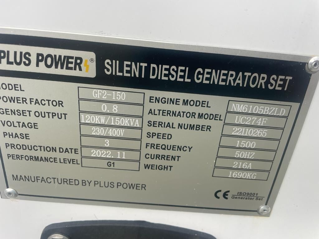 Notstromaggregat NEU Power GF2-150 120 kW 150 kva Baujahr 11.2022 NEU 6-zylinder Diesel (Vielstoffmotor möglich) Motor 132 kW Gewicht Motor 630 kg 50 HZ 230 /400 V 216A inkl. Steuerung Gesamtgewicht 1690 kg Option: Schaltschrank für Hausanschluss und Steckdose 63 kW 220