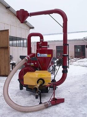 Pneumatische Saug-Druck-Förderer sind für den horizontalen und vertikalen Transport von Getreidekörnern konzipiert. Sie können auch für Entladearbeiten eingesetzt werden, wie zum Beispiel: Umladen von Getreide aus Haufen, Korntanks oder Silos bei gleichzeitiger Verladung auf Transportmittel und umgekehrt. Mit einer am Ende eines flexiblen Schlauchs angebrachten Saugdüse wird das Getreide angesaugt und anschließend über einen Zyklon und einen Spender durch eine Rohrleitung an seinen Bestimmungsort transportiert.