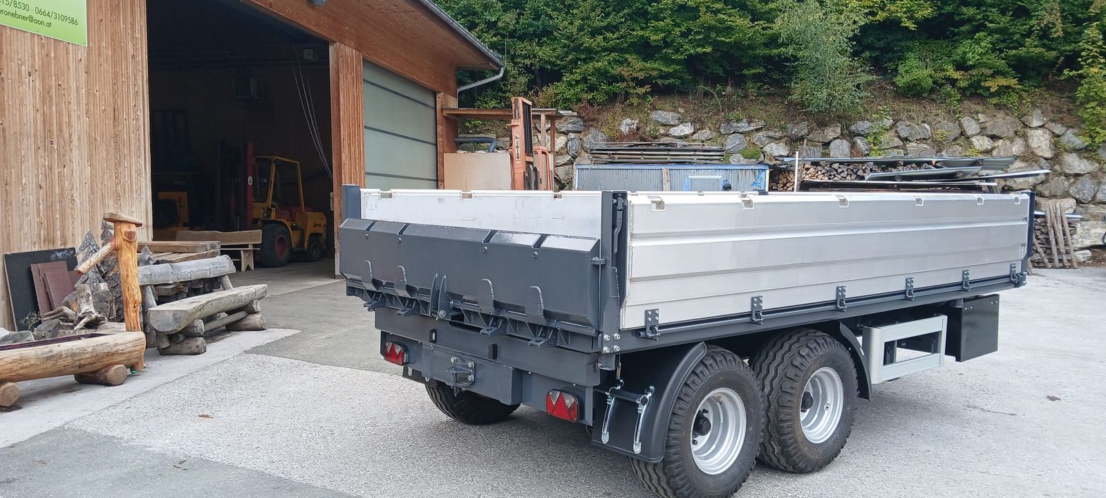 Tandem-Dreiseitenkipper - Fahrgestell 12 Tonnen blattgefedert - Druckluft kombiniert mit hydraulischer Bremse - Schotterklappe hydraulisch - Alubordwände - Werkzeugkasten - Unterfahrschutz - 25 km/h Ausführung - Fahrzeug neuwertig