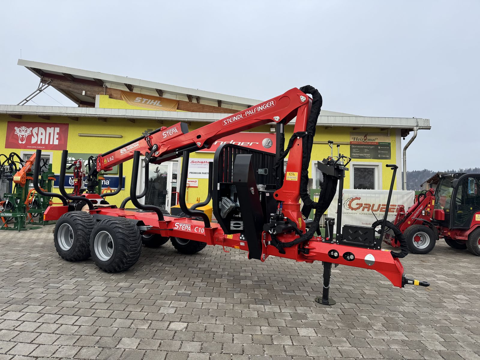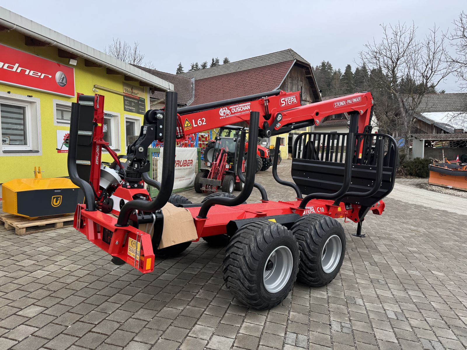 Stepa C10 mit FL 6285S Kran - Drehhebelsteuerrung - Zweikreiskolbenpumpe mit 2x40l - Knickzylinderschutz - Hubzylinderschutz - elektrische Zusatzfunktion ON OFF - Scheinwerferbausatz - Ölkühler - Rotator 4,5to - Forstgreifer FG145 - 4 Rungenpaare - Rahmen ausziehbar - Bereifung 480/45R17 Forstfelge mit Ventilschutz - Untenanhängung - hydraulische Bremse mit Federspeicher - Typisierung 25km/h - Forstzubehör - Weitwinkelgelenkwelle Wir sind gerne für sie erreichbar oder Besuchen sie uns vor Ort