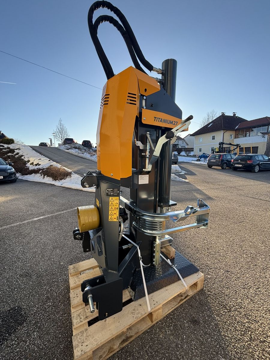 Der Holzspalter TITANIUM 27 mit einer Spaltkraft von 26 t ist der größte technologisch fortschrittliche und qualitativ hochwertige Holzspalter.