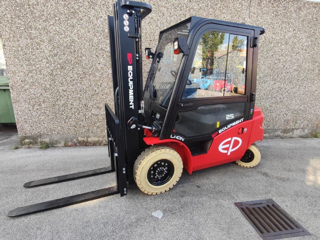 Bauart: Frontstapler / Elektro 4 Rad-Stapler, Tragkraft: 2500kg, Hubhöhe: 4800mm, Bauhöhe: 2280mm, Freihub: 1565mm, Gabellänge: 1150mm, Bereifung vorne: Non Marking