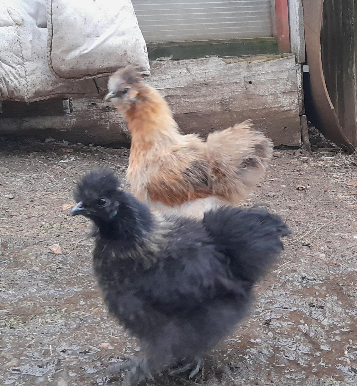 Vergebe 2 Seidenhühner (braun, schwarz) und 1 Seidenhahn (schwarz), geschlüpft im Oktober 2025. Für alle 3 zusammen: € 100,-. Können aber auch einzeln abgegeben werden. Abzuholen in 8171 St. Kathrein/Off.