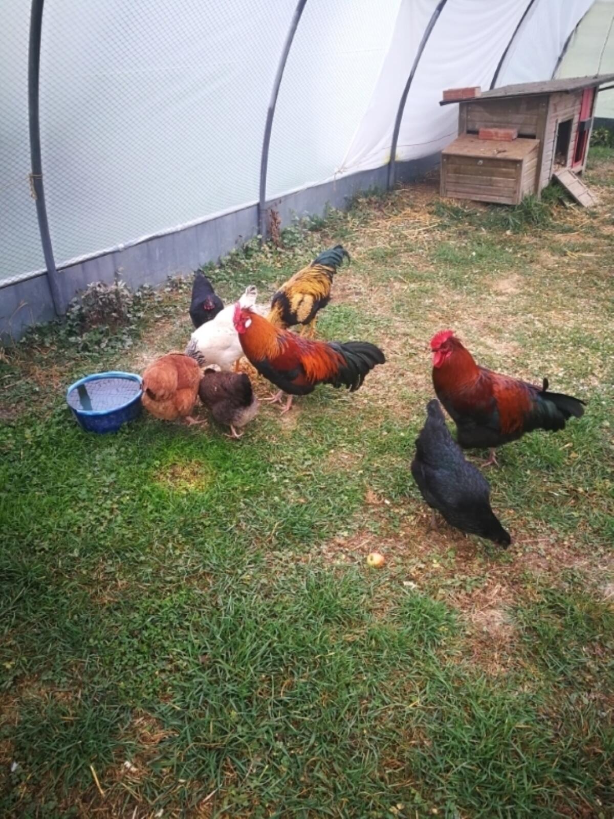 Artgerecht gehaltene Altsteirer aus Naturbrut (2025). Abzugeben sind 2 Hennen und 1 Hahn. Der Hahn ist mit weiteren Hähnen aufgewachsen und zahm. Aufzucht in naturnaher, artgerechter Haltung, gefüttert ausschließlich mit hochwertigem Bio-Futter. Tiere werden nur gemeinsam abgegeben.