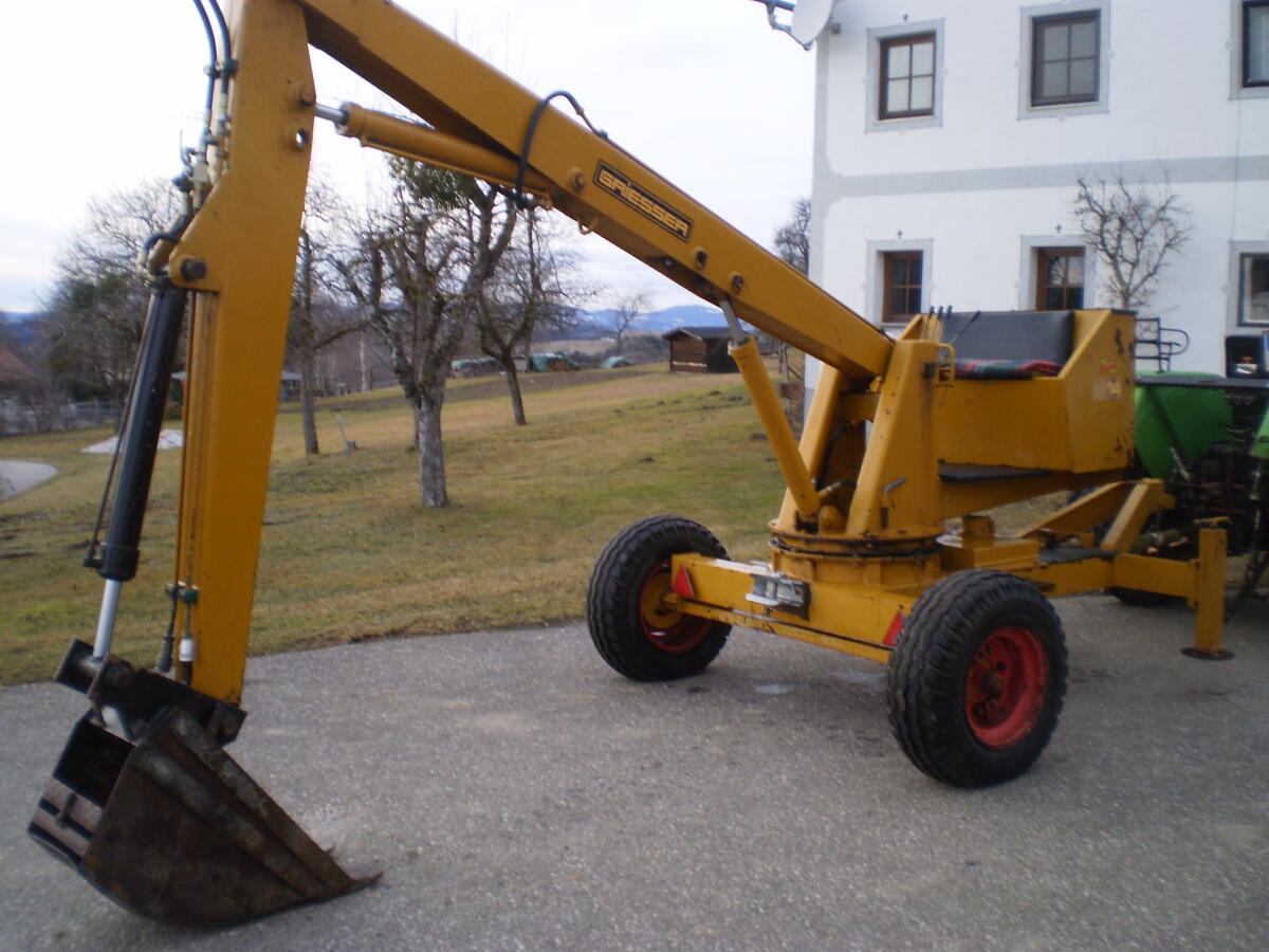 verk. Anhängebagger/ Heu- Mistbagger "Griesser Mammut 16/14", mit einem 30 cm- Löffel und Heuzange, Zapfwellenantrieb, geringer Leistungsbedarf (auch mit 15 PS kein Problem), Baujahr 1980, sehr guter und gepflegter Zustand, Originallack.
