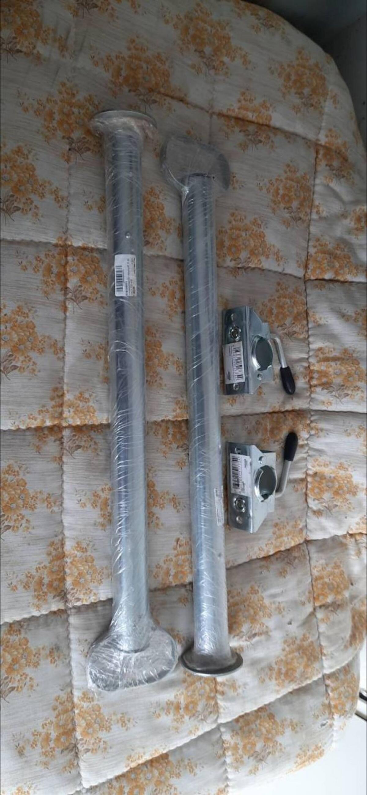 Verkaufe: 2 Stk. Anhängerstützen mit Klemmschellen für Pkw-Anhänger, Stützen: 700 mm x Dm. 49 mm. Neu.