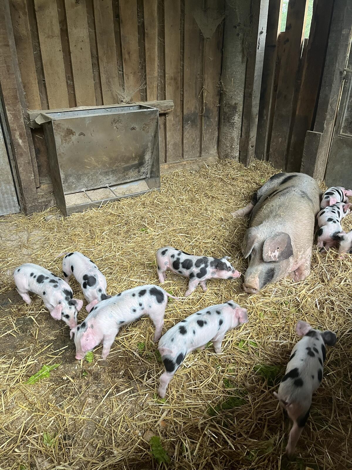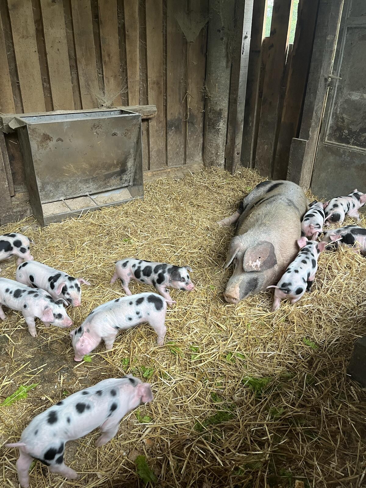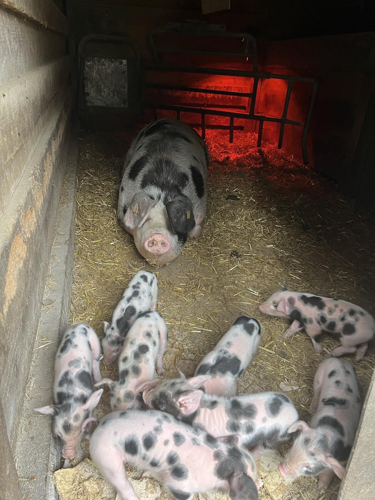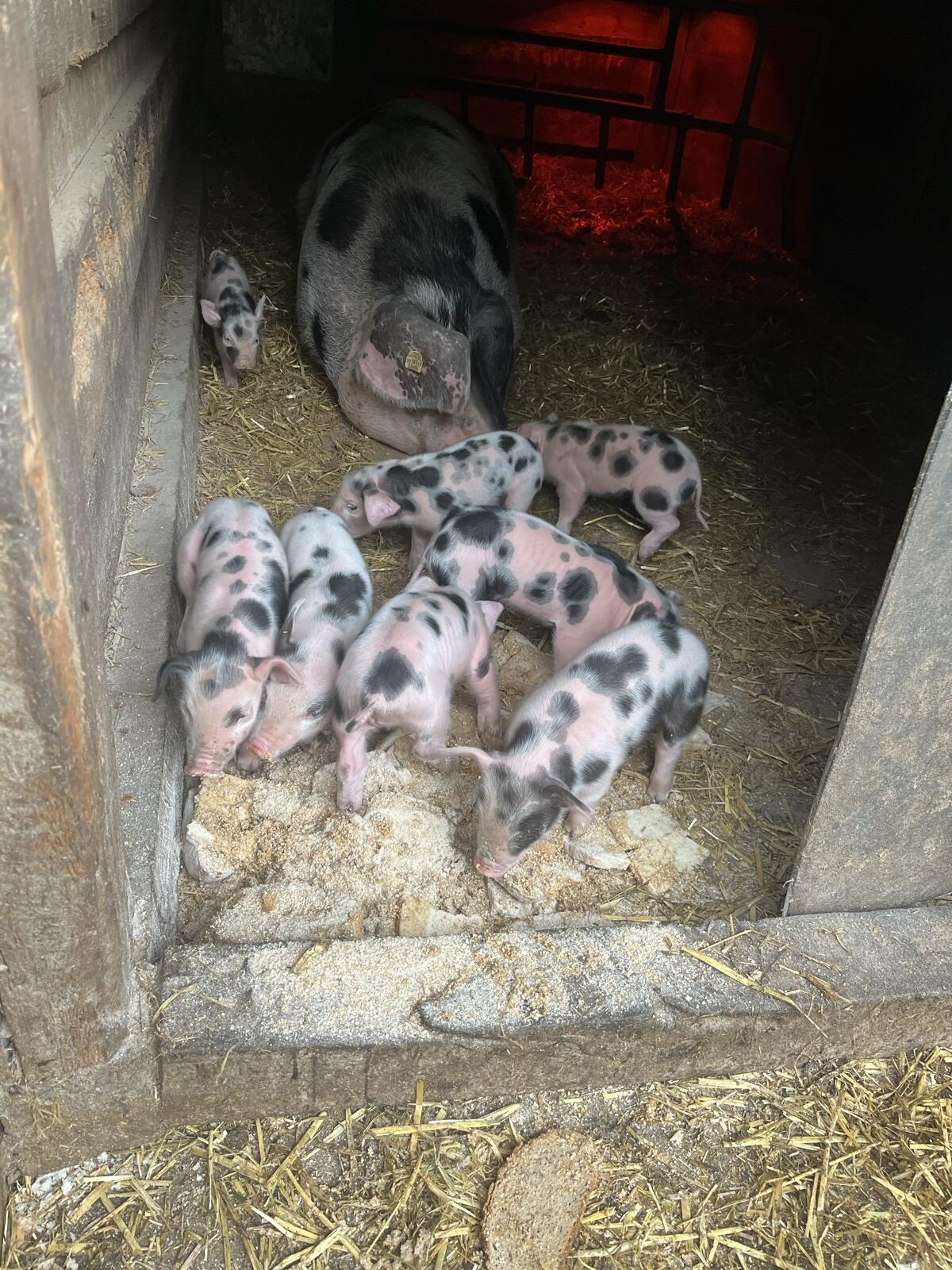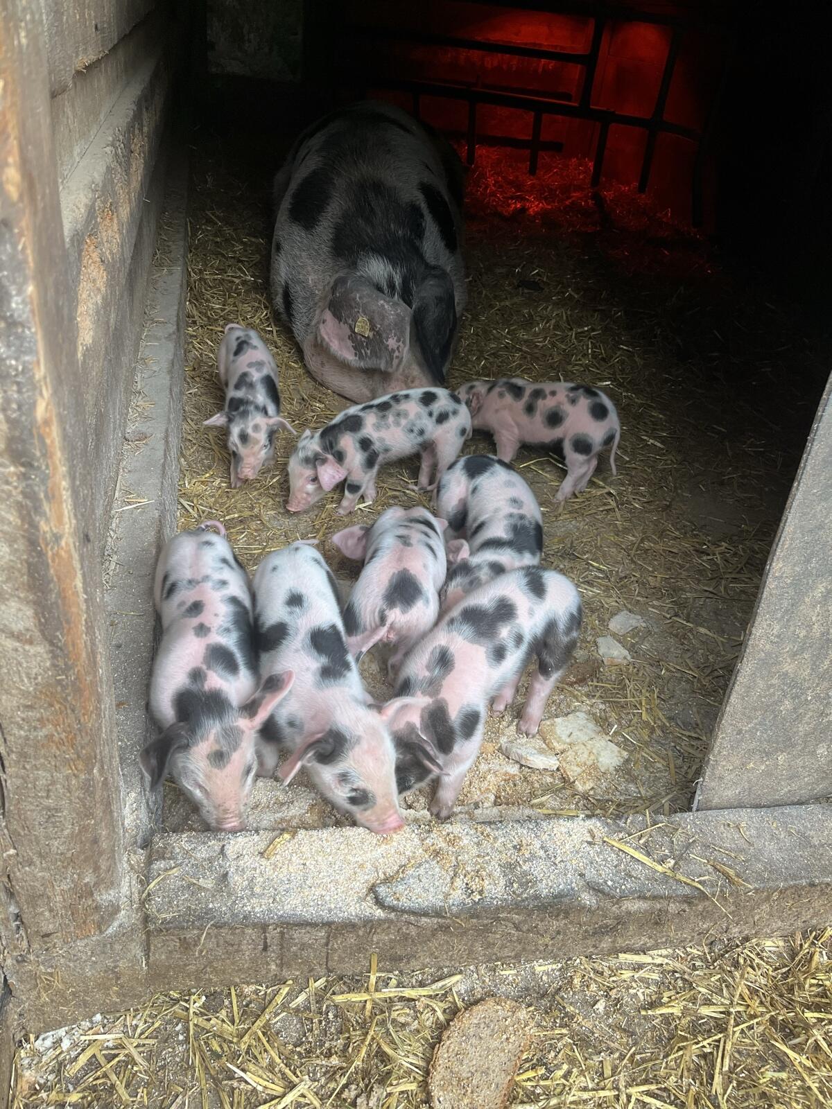 Abzugeben sind reinrassige Bunte Bentheimer Ferkel aus Herdebuchzucht, Vater: Hank Hb Nr. 7095, Mutter: F-Molly Hb Nr. 7078. Abzugeben ab 12. November. Bunte Bentheimer sind perfekt geeignet für die freie Abferkelung und die Haltung im Freien, können aber auch konventionell gehalten werden. Sie überzeugen durch ihre Robustheit und hervorragende Fleischqualität. Etwas kleinrahmiger als herkömmliche Schweine, aber dafür umso länger im Körperbau. Die Schweine sind sehr zutraulich und umgänglich. Bei weiteren Fragen einfach melden. Nicht vergessen, echte Bunte Bentheimer tragen die gelbe Ohrmarke des Herdebuchvereines.