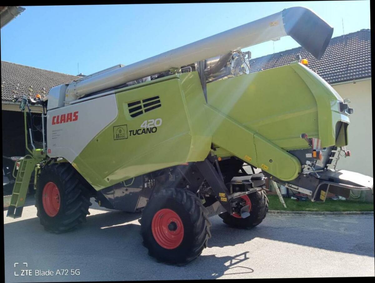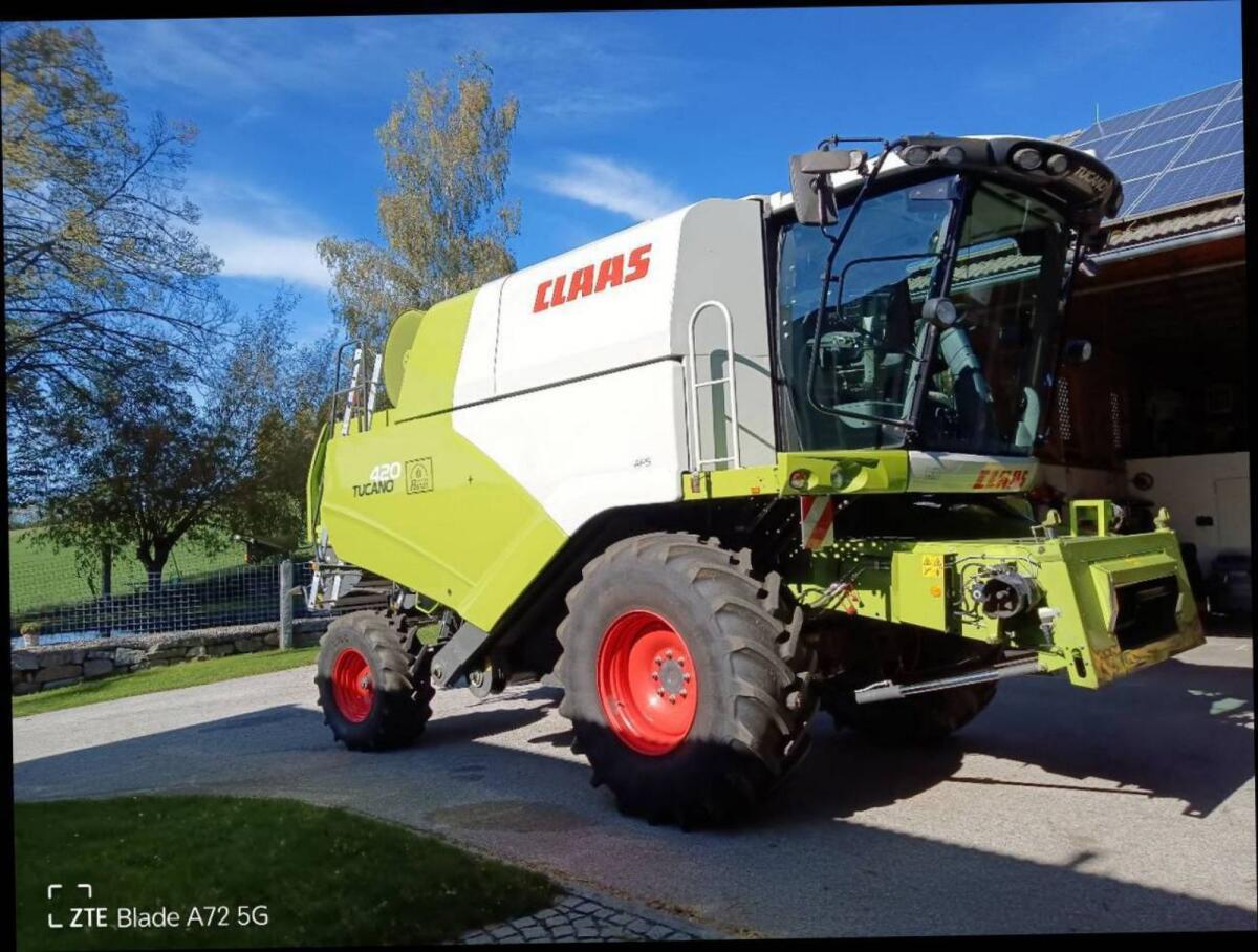 Verkaufe Claas Tucano 420/Stage V, Bj. 2021 mit Top-Ausstattung, Mercedes-Benz OM 936LA, 180 kW/245 PS inkl. Luftkompressor, 3D Hangsiebkasten Reinigung, A/C-Matic Klimaautomatik mit Heizung, Komfortsitz luftgefedert, Kühlschrank, Arbeitsbeleuchtung-Basic Plus, Beleuchtung für klappbare Vorsatzgeräte, Kamera-Heck Kamera, Korntankauslaufrohr, Kamera-Bildschirm-Profi Cam, Anhängerkupplung automatisch, Korntankauslaufrohr lang, Strohhäcksler, Spreuverteiler, Schneidwerk C540 klappbar, Bj. 2021. Top gepflegte und gewartete Maschine. 1 Mal jährlich Nacherntecheck durch Fachfirma. 755 Motorstunden. Preis auf Anfrage.