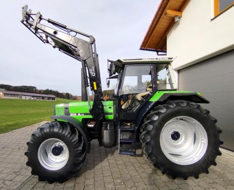 Deutz Agrotron 85, Bj. 1999, 5.052 Bstd. Besitzer: 1. Reifen vorne: 420/R24 mit 20%, Reifen hinten: 520/R34 mit 30%. Stg.: 2xDW, 2xKreuz DW. Klimaanlage: schlechte Funktion, Heizung: gute Funktion, MwSt. 19% ausweisbar, TÜV bis 05/2026.
