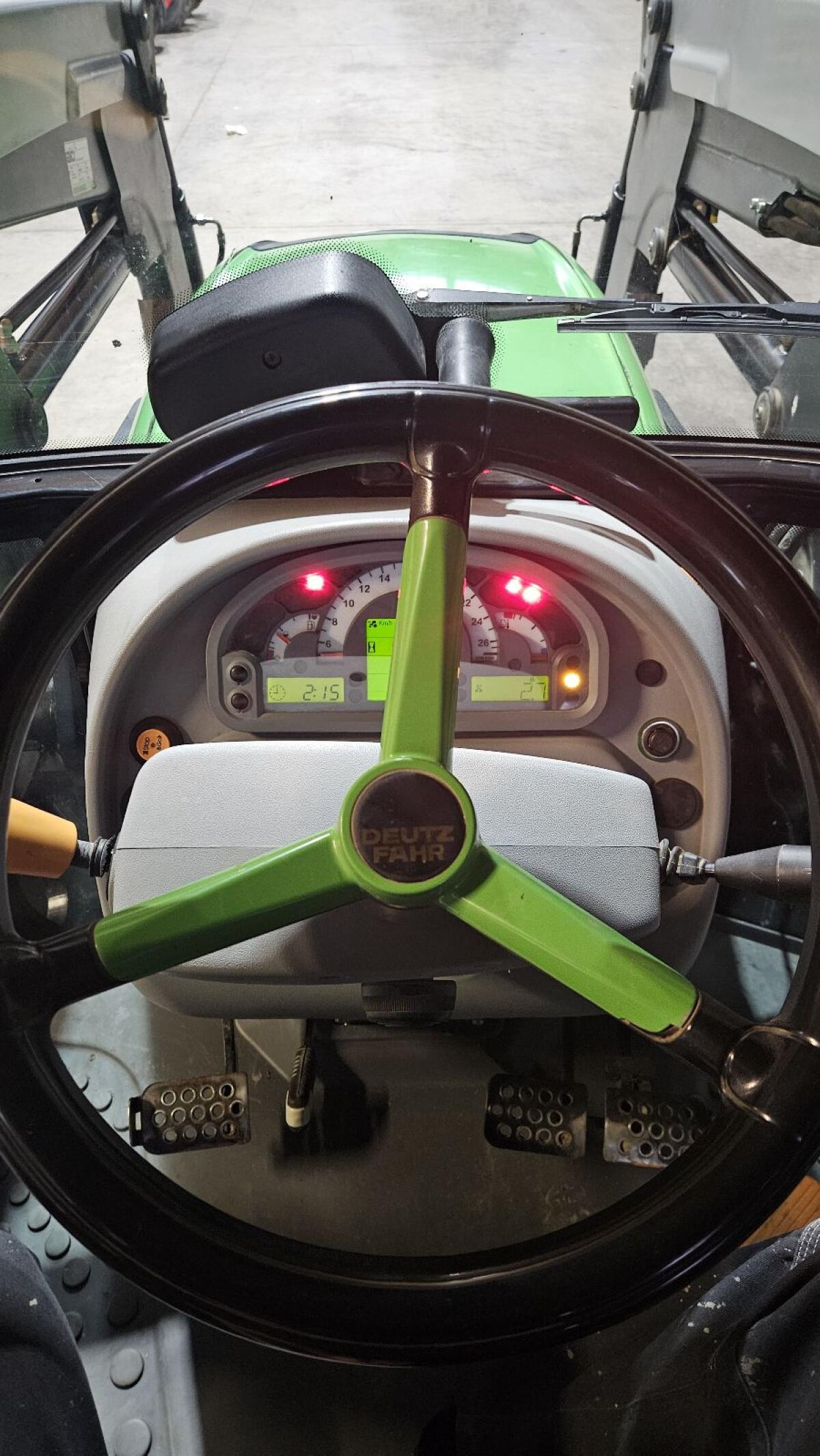 Sehr gepflegter Deutz-Fahr Agroplus Traktor, 3 Zylinder mit super bewährter Technik (40 km/h reduziert, Stop&Go ohne Kupplung, Power Shuttle, 4Rad-Bremse, el. Allrad-Sperre und Zapfwellenschaltung, Superkomfort mit Klima und Heizung, Wischer hinten, 45V 45 R Gänge, Sonnendach mit Fenster, Sauter Fronthydraulik massive Ausführung mit 2 x Faster für Anbaugeräte, 5 dw Stg., automatische, höhenverstellbare Anhängerkupplung, luftgefederter Fahrersitz, Bereifung VA: 280/85 R 20, Zustand: 100 %, Bereifung HA: 520/85 R 32, Zustand: 40 %, Breite außen 1,75 m, Frontlader Quicke Q26, Parallelführung, Schwingungsdämpfung, 3. Steuerheit, Euro-Werkzeugaufnahme, Schnellkuppler. Wenig Frontlader Einsätze.