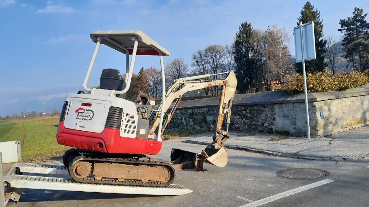 Erdbau Pirmann hilft Ihnen, Ihr Bauvorhaben zu verwirklichen, und steht für saubere Arbeit und Handschlagqualität. Unsere Spezialgebiete sind kleine Zufahrten und auch wenig Platz, wir kommen rein, wo andere draußen bleiben müssen. Takeuchi TB 016 (1,6 t) Einsatzgewicht, Breite 980 mm - 1.300 mm und einer Höhe von 2,30 m. Takeuchi TB 108 (800 kg) Einsatzgewicht, Breite 680 mm - 990 mm. Der Preis ist eine Richtlinie und kann nach Absprache je nach Arbeitsgang variieren! Preis exkl. An-/Abfahrt! Auf Ihre Anfrage freut sich Erdbau Pirmann. Danke.