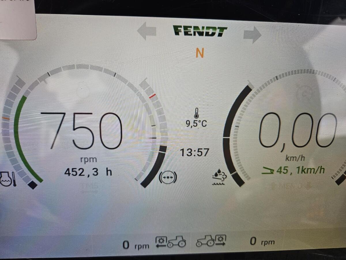 Equipaggiamento da menzionare: Caricatore con bloccaggio idraulico dell'attrezzo, terza funzione, Idraulica anteriore e presa di forza. Pompa idraulica di grandi dimensioni, LS da 110 l. Aria condizionata. 4 prese idrauliche doppie posteriori, 1 presa doppia anteriore.