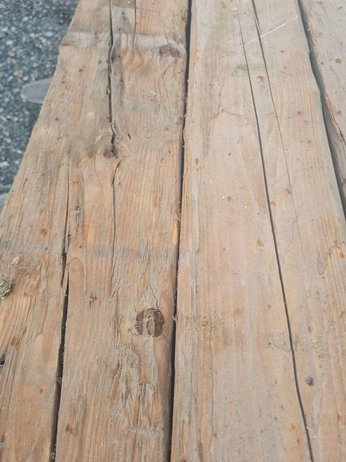 Handbehauene Holzbohlen, handgehauene Holztrame. Balken ca. 15x12 cm, 16x13 cm. 11x Gesamtlänge ca. 250 cm, Länge zwischen Kerben ca. 190 cm, 3x 200 cm und zwischen Kerben ca. 165 cm.