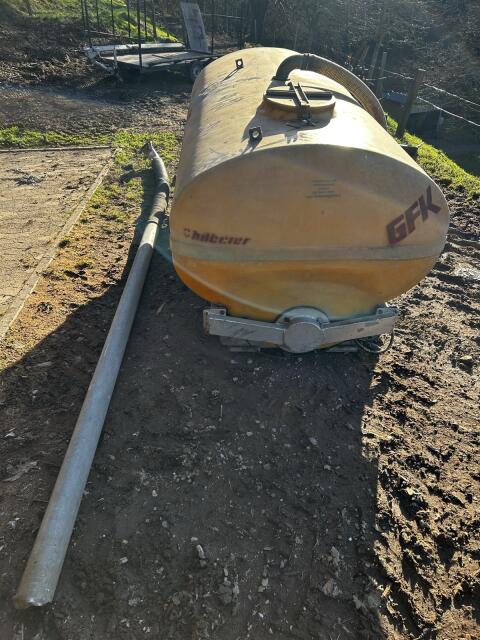 Güllefass Marke Gülleknecht, ca. 1.700 l, größere Saug- und Druckpumpe, zusätzlicher Seitenanschluss, wenig gebraucht, wurde immer ausgewaschen und untergestellt, sehr guter Zustand.