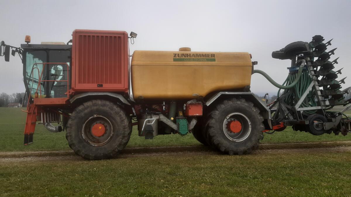 Verkaufe Gülletac Holmer TV 420 mit 15 m³ Gülleaufbau von Zunhammer. Bj. 1997, erst 6.100 Bstd., TÜV bis April 2027, 40 km/h-Ausführung, Außenbreite 3 m, 1.050er Bereifung, 6.000 l Vogelsangpumpe. Ein paar kleinere Reparaturen stehen an, könnten aber auch noch erledigt werden. Sonst guter Zustand, Trac springt auch nach längerem Stillstand auf Anhieb an. Optional erhältlich: 8 m Zunhammer Scheibenegge zur direkten Gülleeinarbeitung, 12 m Zunhammer Schleppschlauchverteiler, hier müssten etliche Schläuche erneuert werden, passendes Zubringerfass Annaburger HTS 15.027, 15 m³, 18 t zzG, guter Zustand. Preis auf Anfrage und zzgl. 19 %. Besichtigung und Gebote ausdrücklich erwünscht.