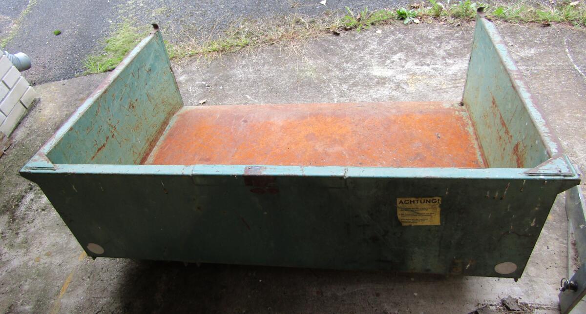 Verkaufe stabile Heckmulde mit Dreipunktaufnahme. War an einem Steyr 50 im Einsatz und wurde für Grünschnitt und leichte Transportarbeiten verwendet. Besichtigung jederzeit in der Nähe von Körmend, Ungarn, aber auch in Sankt Marein bei Graz möglich, Zustellung möglich.