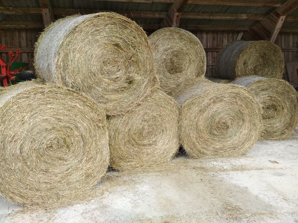 1. Schnitt von 2025, nicht abgeregnet, trocken gelagert in Halle. 20 Stk. vorhanden, ca. 340 kg je Ballen. Preis € 69,- (0,20 ct je kg).