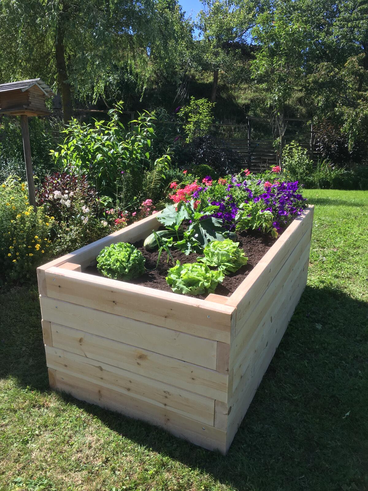 Hochbeet, Maße 150, 100, 75 cm in Kiefer sägerau, Wandstärke 60 mm, Kanten abgefast, € 150,-. Zerlegt. Maße 200, 100, 75 in Kiefer sägerau, Wandstärke 60 mm, Kanten abgefast, € 165,-. Zerlegt. Hochbeet, Maße 300, 125, 75 in Kiefer sägerau, Wandstärke 60 mm, Kanten abgefast, € 195,-. Zerlegt. Rankhilfe für Längsseite bei Hochbeet € 30,-. Rankhilfe für Längs- und Breitseite € 45,-. Das verwendete Kiefernholz ist sehr langsam gewachsen und zeichnet sich durch eine lange Lebensdauer aus. Zustellung gegen Aufpreis möglich.