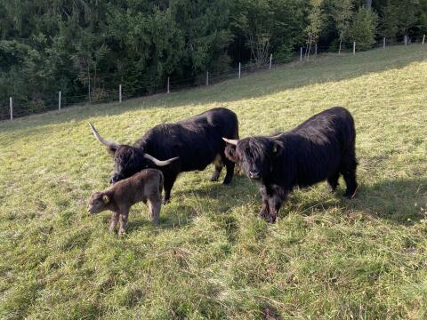 Hochlandrindkalbin zu verkaufen, 1 Jahr alt, sehr zutraulich, mit Zuchtpapieren.