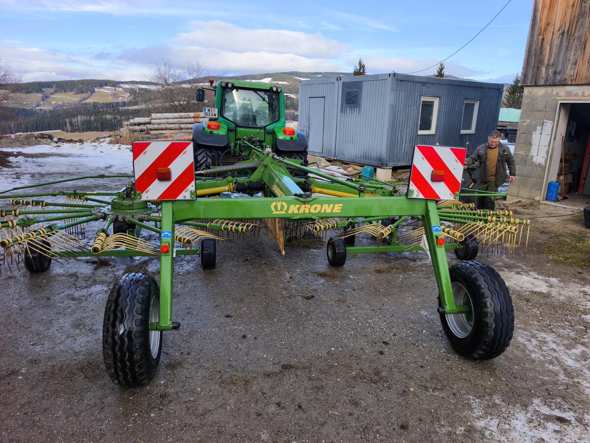 Predám stredný zberač Krone v dobrom optickom a technickom stave. Sklopné ramená s hrotmi, elektrická/hydraulická predvoľba pre zdvih jednotlivých rotačných krúžkov, plachta na zber a hydraulické nastavenie šírky zberu. AB 680-760 cm.