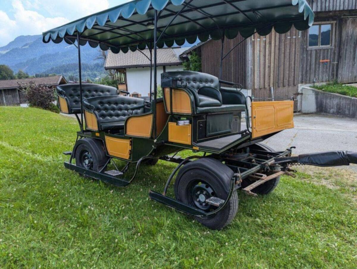 Wegen Einstellung des Fahrbetriebs verkaufen wir unsere Kutsche. Für 10 Personen + Kutscher. 4 Scheibenbremsen, plus Feststellbremse. Komplette Beleuchtungsanlage, inkl. Blinkeranlage für Straßenfahrten. Dach, Kufen sowie 3-Sitzbank sind mit wenigen Handgriffen abnehmbar. Sofort fahrbereit.