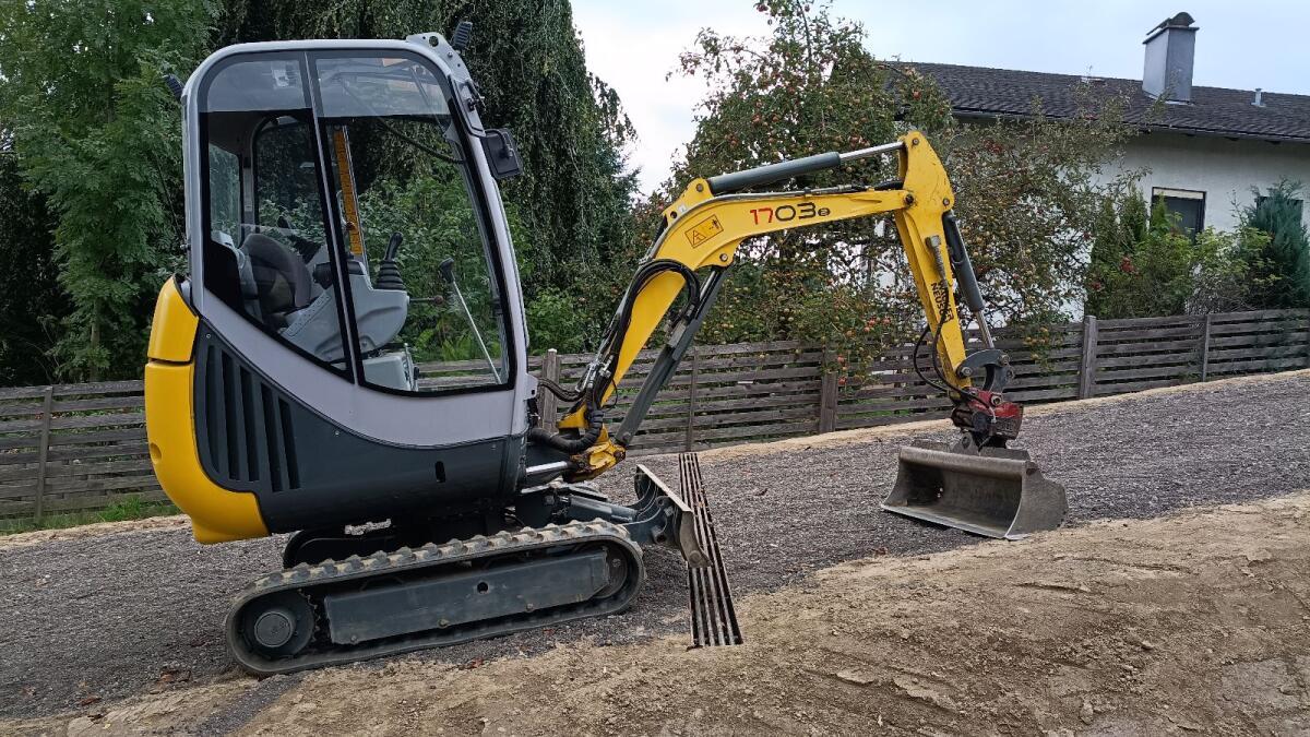 Verkaufe sehr gepflegten Minibagger 1,8 t Neuson 1703 2 mit nur 1.200 Bstd., Bj. 12 aus Privatbesitz. Service neu. inkl. Geel Löffelpaket, Böschungslöffel hydr. 120 cm, Tieflöffel 60, Tieflöffel 30. Automatischer Geel Schnellwechsler. Sehr sauberer Zustand, top gewartet, nicht ausgeschlagen. Wurde nur für kleine Gartenarbeiten verwendet. Funktioniert einwandfrei. Yanmar 3 Zyl.-Motor mit sehr geringem Verbrauch, aber sehr durchzugsstark, schnelle und feinfühlige Hydraulik. Fahrwerk werkzeuglos hydr. verstellbar von 130 cm auf 100 cm Breite. Kabine abnehmbar, Motor Service neu, Standort Nähe Linz.